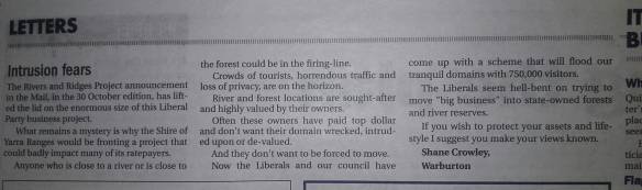 The Rivers and Ridges Project Announcement in the Mail, in the 30 October edition has lifted the lid on the enormous size of this Liberal Party business project.