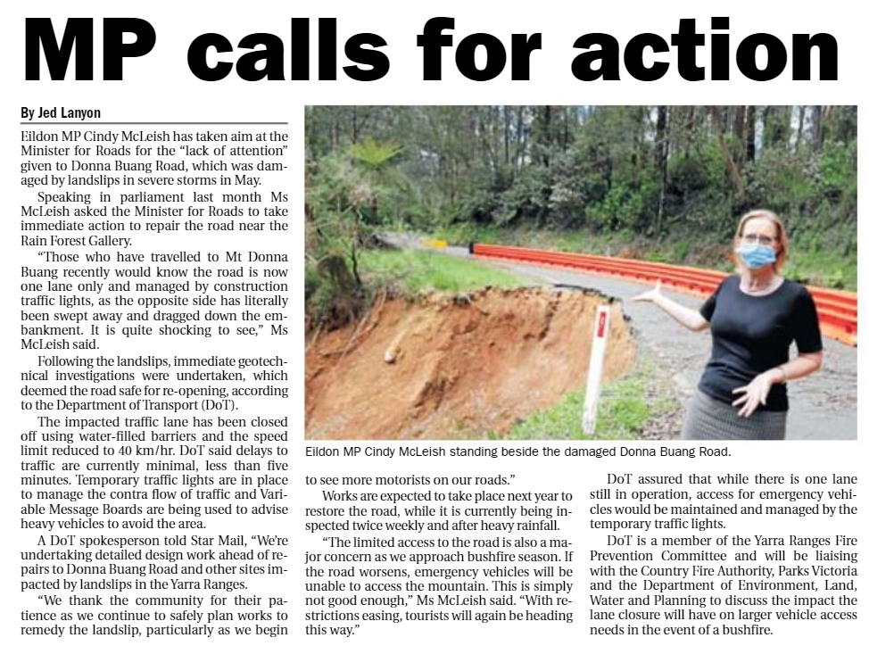 Mt Donna Buang is prone to Landslip. This large landslip has seriously threatened Mt Donna Buang Road, which is the Road that is proposed to carry mountain bike traffic to the top including shuttle buses regularly taking mountain bikers to the top to scoot down to be picked up again to be transported to the top. Mt. Donna Buang is not suitable for mountain bike trails because of the multiple landslips that plague it among so many other problems.